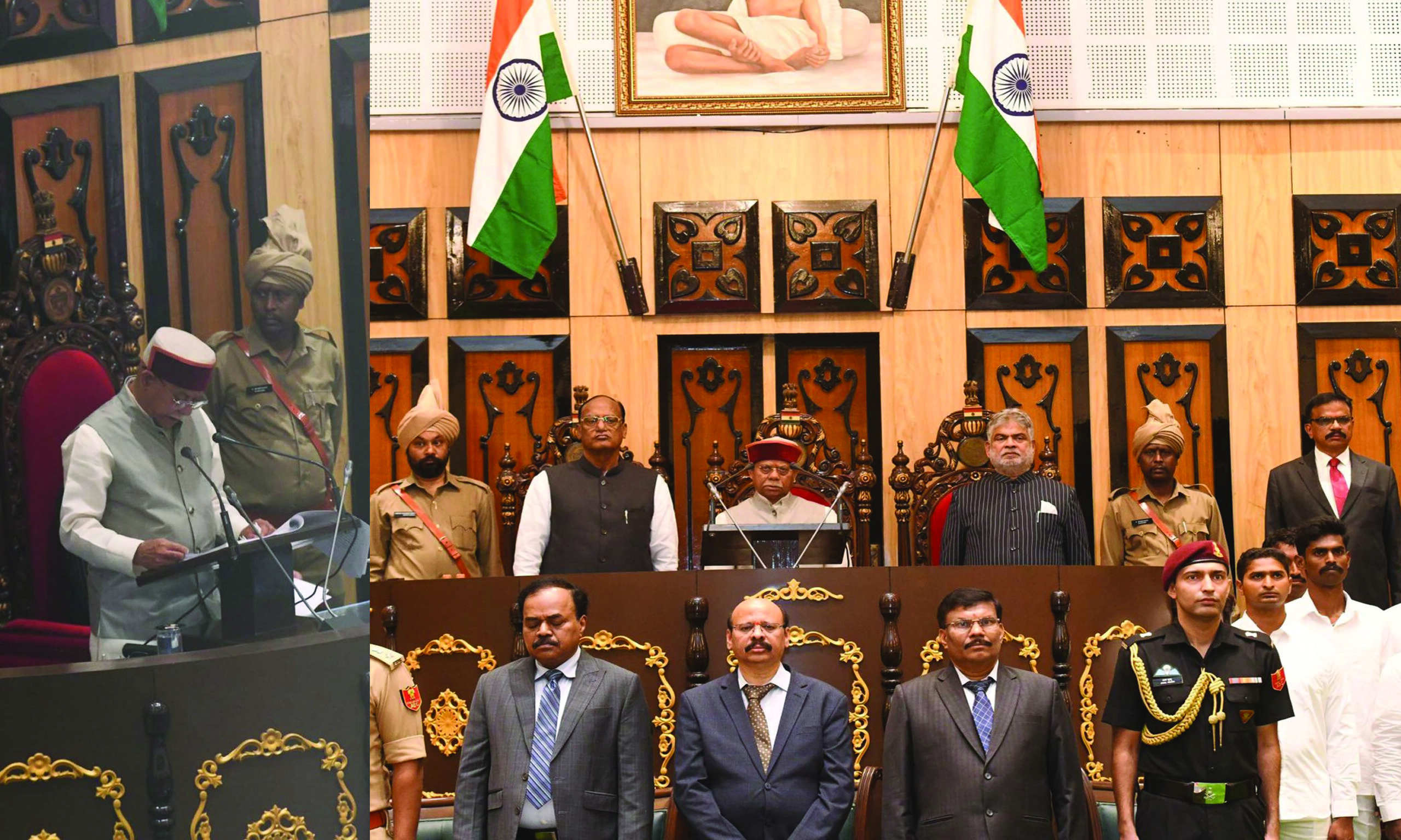 హైదరాబాద్, మార్చి 16 (ఇయ్యాల తెలంగాణ) : తెలంగాణ అసెంబ్లీ బడ్జెట్ సమావేశాలు సోమవారం ప్రారంభమయ్యాయి. అసెంబ్లీలో తొలిసారి తెలంగాణ రాష్ట్ర గీతాన్ని ఆలపించారు. ఆపై గవర్నర్ శివప్రతాప్ శుక్లా ఉభయసభలను ఉద్దేశించి తెలుగులో ప్రసంగాన్ని మొదలుపెట్టారు. ప్రతిపౌరుడు అభివద్ధిలో భాగస్వామిగా ఉండేలా బడ్జెట్ను రూపొందించినట్లు తెలిపారు. ప్రజా సంక్షేమమే లక్ష్యంగా పాలన సాగుతోందన్నారు. 2047 తెలంగాణ రైజింగ్ దిశగా అడుగులు వేస్తున్నట్లు గవర్నర్ శివప్రతాప్ శుక్లా పేర్కొన్నారు. 2047 నాటికి 3 ట్రిలియన్ డాలర్ల ఆర్థిక వ్యవస్థే లక్ష్యమని గవర్నర్ పేర్కొన్నారు. ప్రస్తుతం దేశ జీడీపీకి తెలంగాణ 4.99 శాతం అందిస్తోందని తెలిపారు. ప్రపంచానికే దిక్సూచిగా తెలంగాణ నిలుస్తోందని అన్నారు. ఏడాది కాలంలో సంక్షేమ ఫలితాలు అందరికీ అందేలా తీసుకురావడానికి చర్యలు తీసుకుంటున్నామని గవర్నర్ తెలిపారు. ఈజ్ ఆఫ్ డూయింగ్ బిజినెస్ ద్వారా రాష్టాన్ని అభివద్ధి చేస్తున్నామని చెప్పారు. రాష్టాన్ని కోర్, ప్యూర్, రేర్గా విభజించామని, హైదరాబాద్ లోని జీహెచఎంసీని మూడు కార్పొరేషన్లుగా విభజించామని గవర్నర్ తెలిపారు.హిల్డ్ పాలసీ ద్వారా పరిశ్రమల భూముల బదలాయింపు చేపట్టామని గవర్నర్ తెలిపారు. ప్రజలకు రక్షణ, భద్రత కల్పించేందుకు నాలుగు కమిషనరేట్లు ఏర్పాటు చేశామని పేర్కొన్నారు.